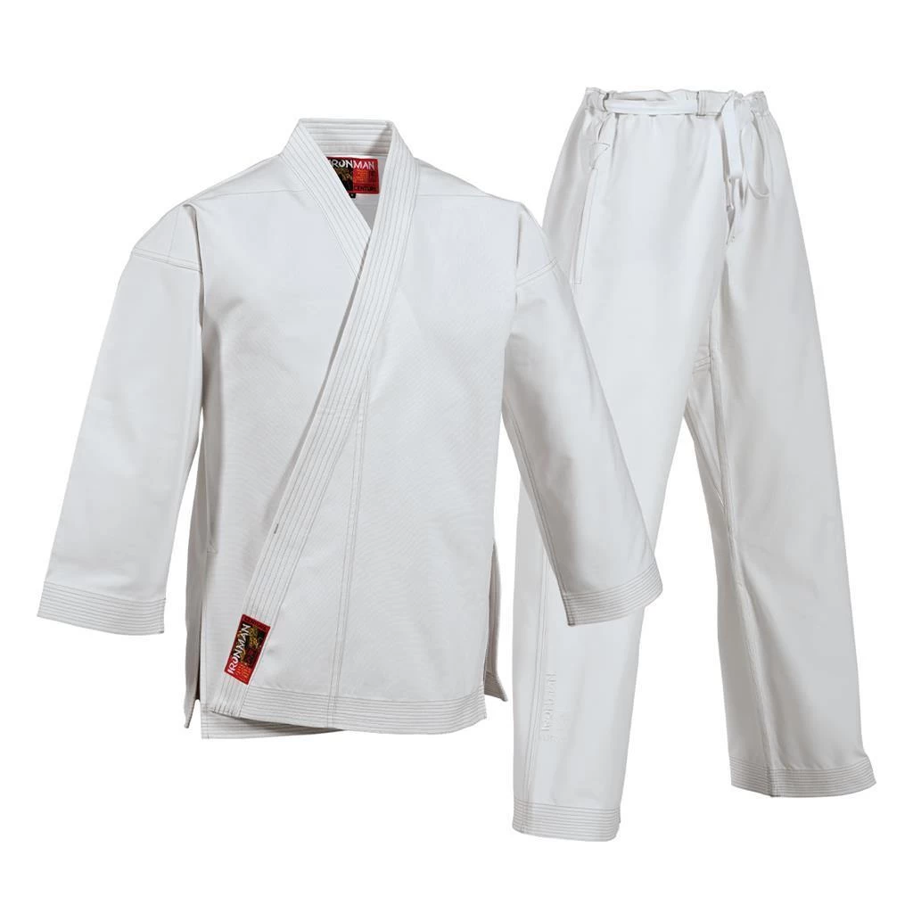 Century released the original Ironman Uniform in 1990. It immediately became popular with martial arts school owners, instructors, and high-level competitive martial artists who needed a professional-looking uniform. Made from our heaviest (13 oz. cotton-poly) fabric, the Ironman is not only incredibly durable, but wrinkle-resistant. Our new Ironman is even better than the original, thanks to improvements in material and technology quality! It features a gusseted inseam and armpit, which improve mobility and help the uniform stay in place during rapid movements. The cut of the waistband is designed for comfort, as are the low pockets of the pants. Your Ironman uniform comes with a drawstring bag for easy storage and transport.