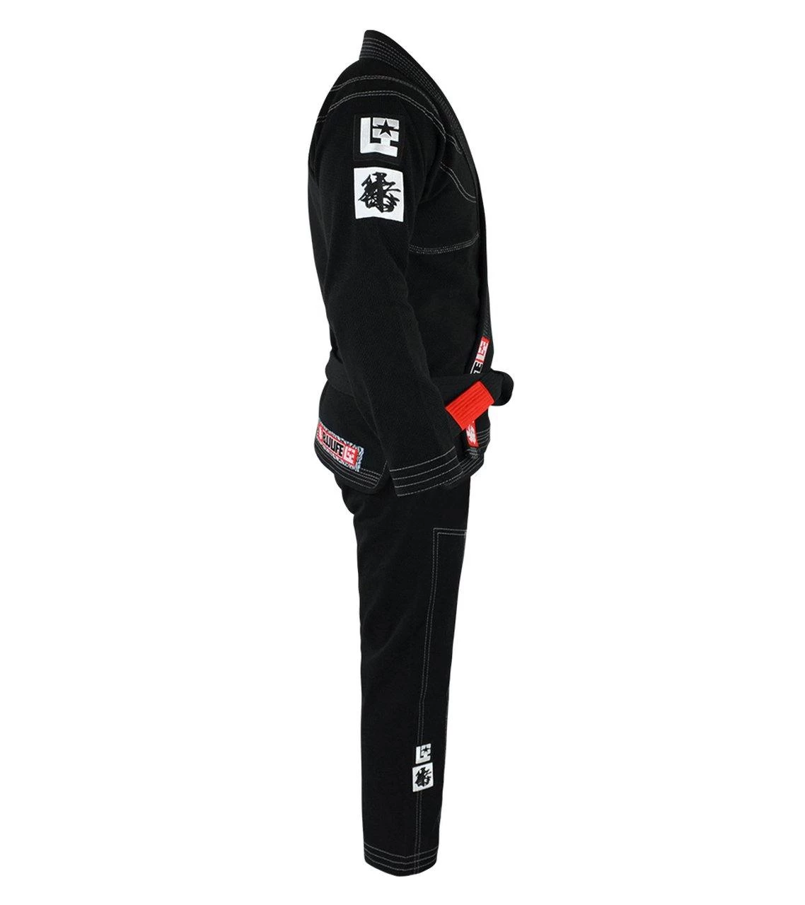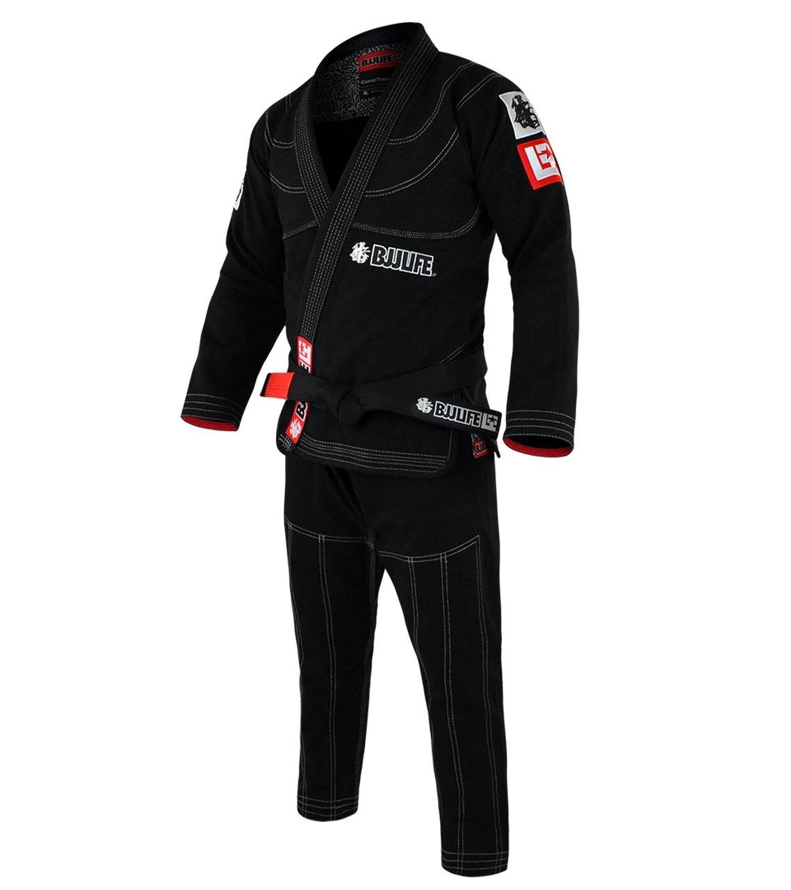 BJJ Life CompTrainer is the perfect all purpose GI. Built for Training and Competition, the 450 gram jacket and 11 oz. Pants are lightweight and flexible but heavy enough to withstand heavy duty training sessions day in and out. Being able to compete in what you train in allows for no surprises day of competition. The unique blend of embellishment mixing direct embroidery, sublimated panels, Label Patches and Screen printing offer a truly multi dimensional design. A clean outside with elephant pattern accents and internals.
