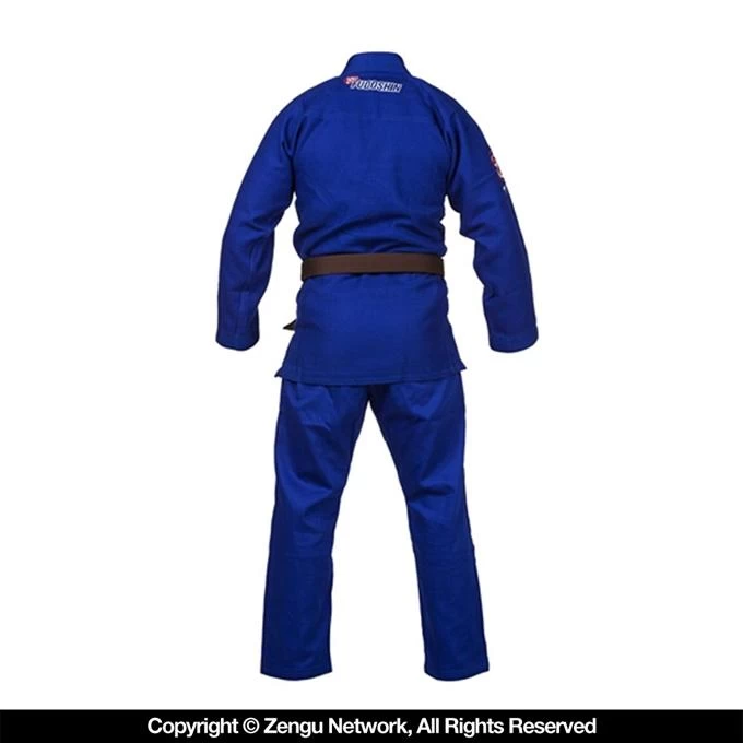 Fudoshin is a newcomer to the scene, with the aim of delivering a more traditionally styled kimono for Brazilian Jiu Jitsu practiioners. No contrast stitching, no over-the-top patchwork, no funky colors. The only logo placements are the simple arm embroideries and a small Fudoshin type placed on the neck area. The plain white finish is made up of 550 GSM gold weave and 14 oz. twill cotton. Even the taping is kept clean and simple, using canvas cotton (no graphics) to protect the interior seams and cuffs. Ample stitching reinforcements ensure durability and a long life for your new Fudoshin BJJ Gi.