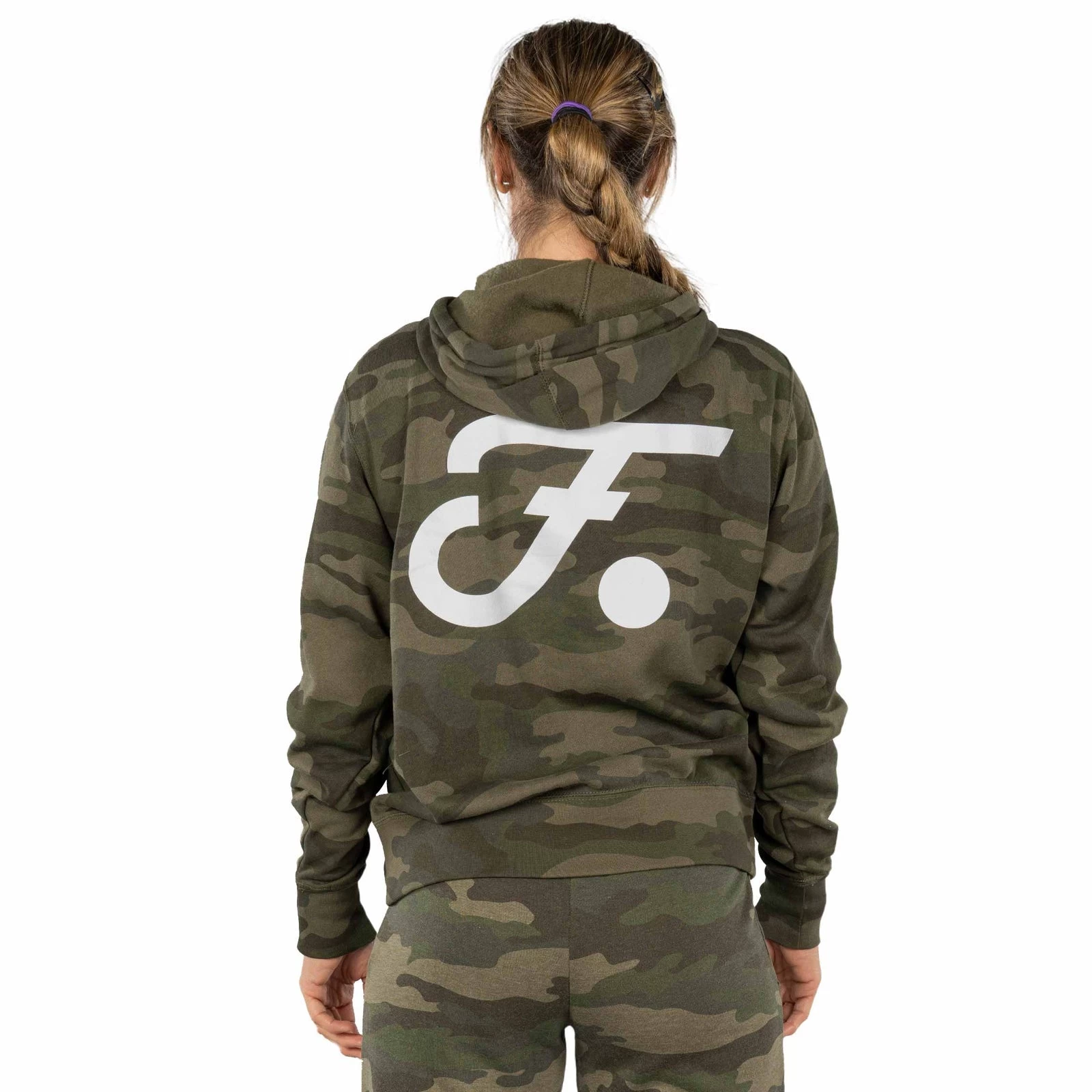 Stand out in this FUJI Sports Camo Pull-Over Hoodie featuring a forest green Camo base design, FUJI print on the left chest, and a FUJI “F” on the back.