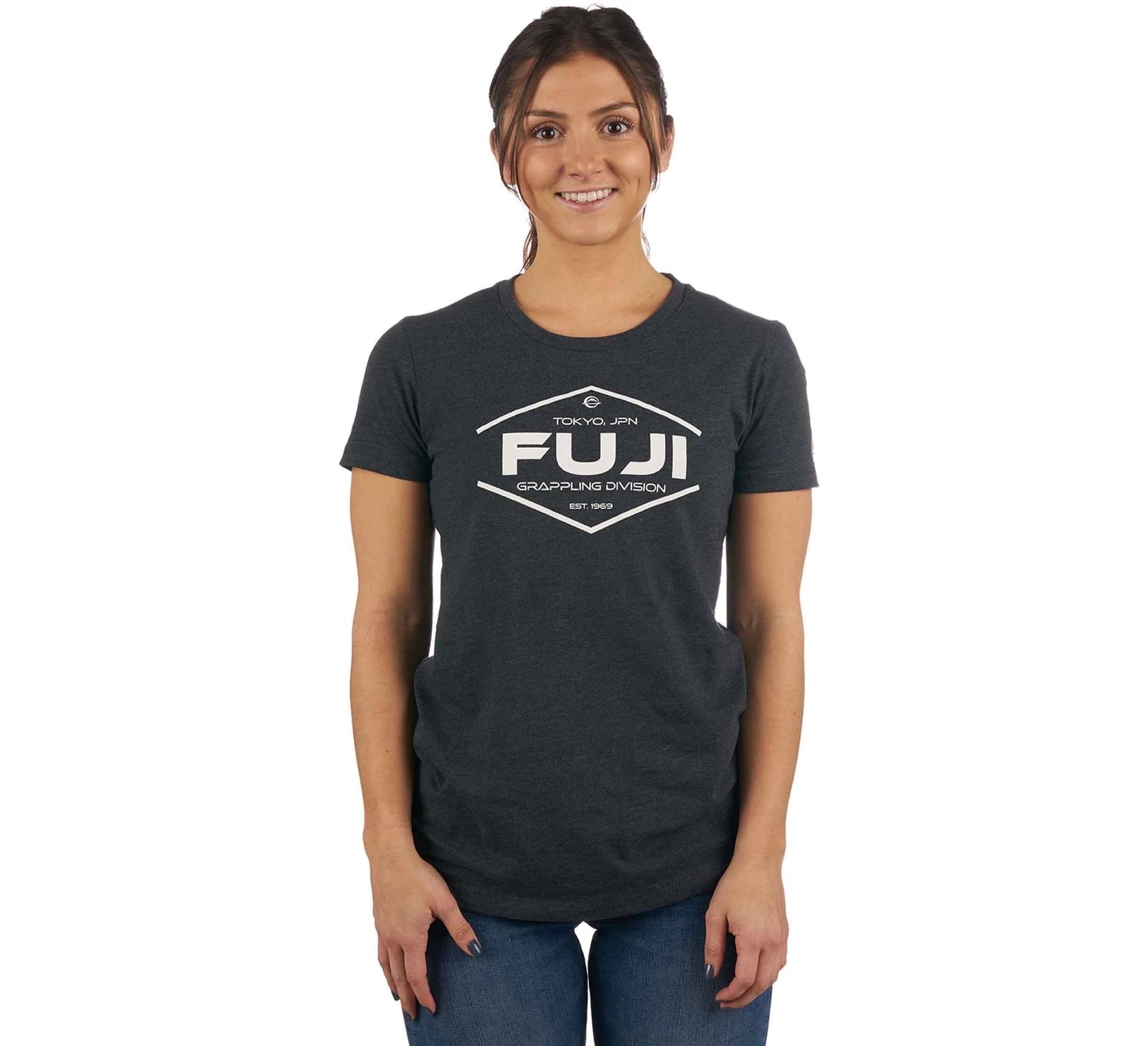 FUJI Grappling Division Women’s T-Shirt is a 60% combed ringspun cotton 40% poly t-shirt for an extra soft feel. FUJI Grappling division graphics on the front and a embroidered marrow FUJI icon patch on the sleeve.