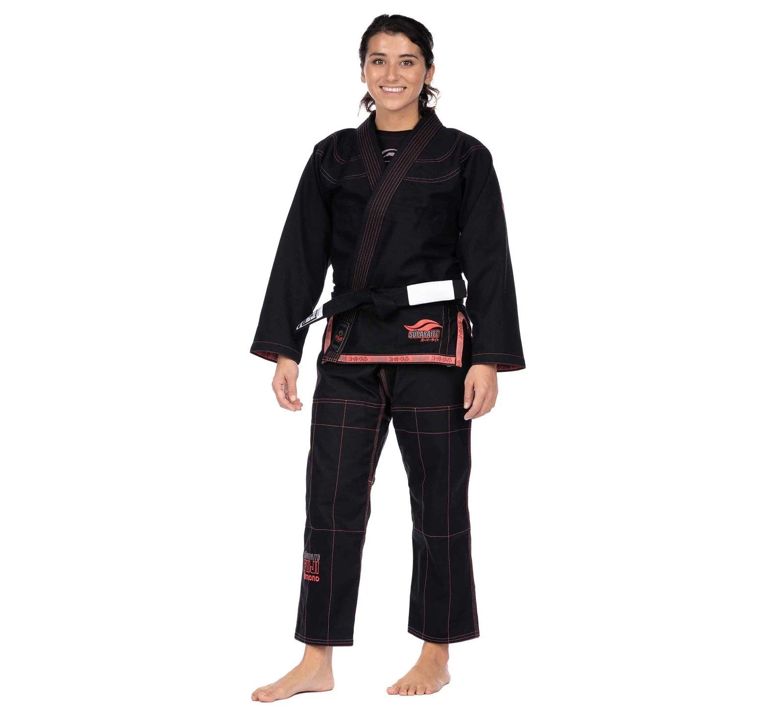 This gi’s design features contrast Stitching on Jacket & Pants, a Suparaito logo on the jacket, skirt, and pants. FUJI logos on Sleeve, Back of Neck, and Pants. Lastly, and outside taping on the skirt.