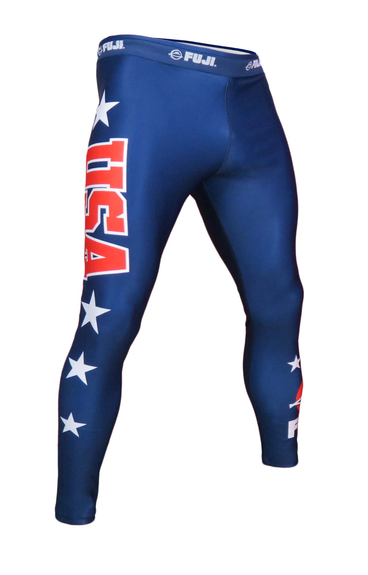 Train in comfort while showing your patriotism with FUJI’s full length USA Stars Spats grappling tights for BOTH MEN AND WOMEN.