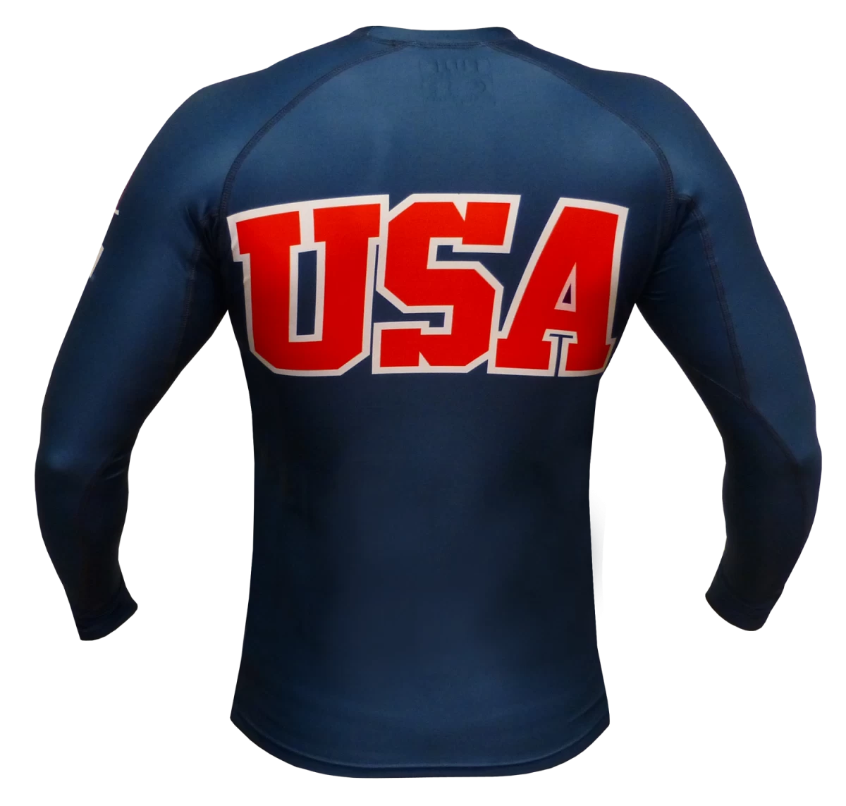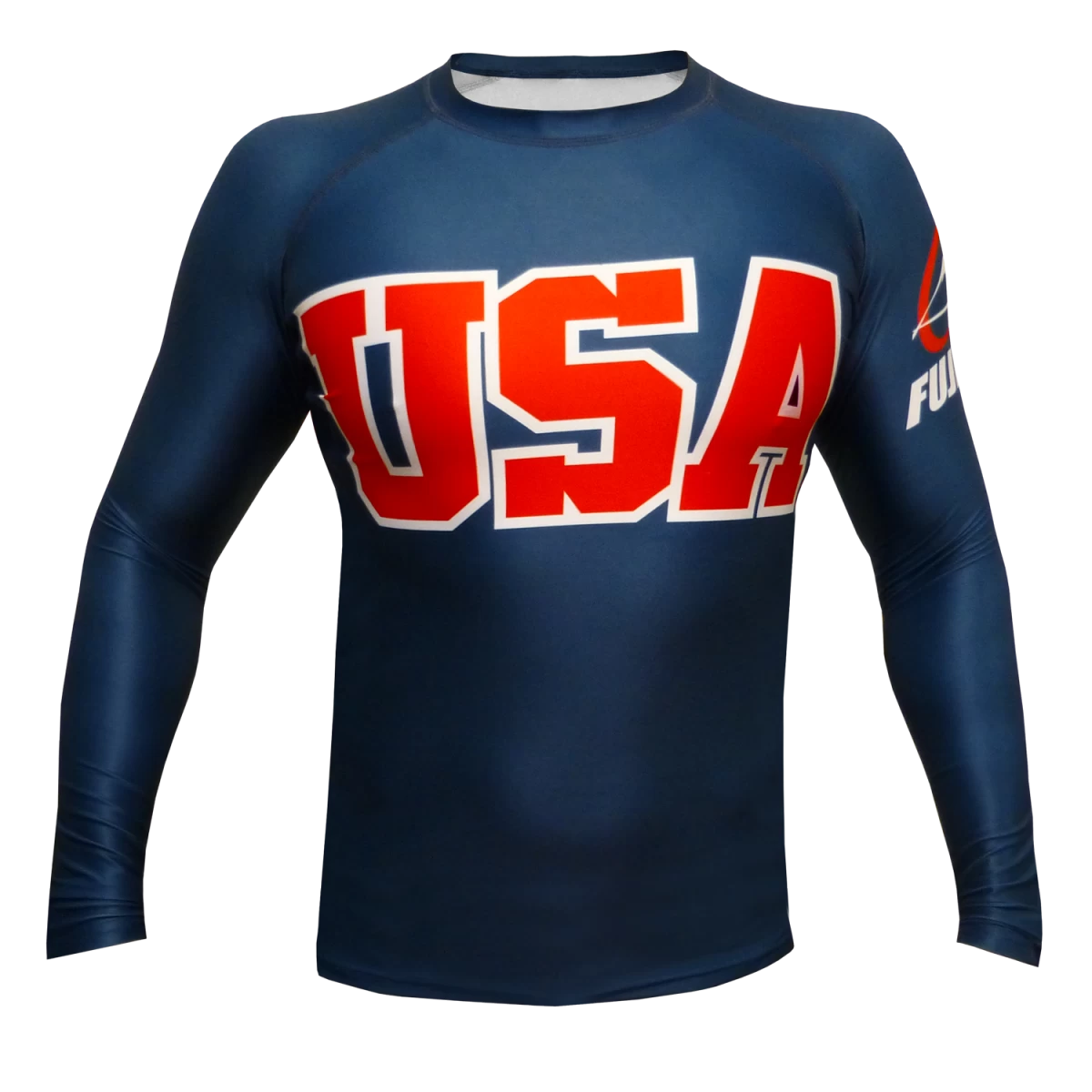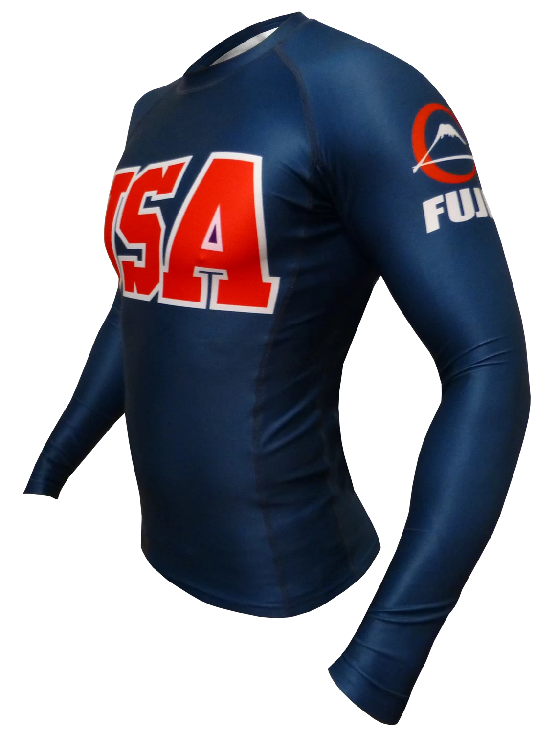 Show off your American pride while training in comfort and style with FUJIβs NEW USA Rash Guard! This fully sublimated long sleeve rash guard features a bold USA graphic on the front and the back that will never crack, peel or fade. Made of high quality anti-microbial fabric with reinforced stitching for long-lasting durability and extreme comfort.