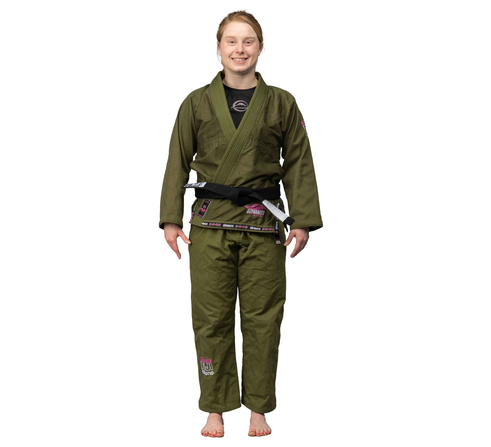 This gi’s design features contrast Stitching on Jacket & Pants, a Suparaito logo on the jacket, skirt, and pants. FUJI logos on Sleeve, Back of Neck, and Pants. Lastly, and outside taping on the skirt.