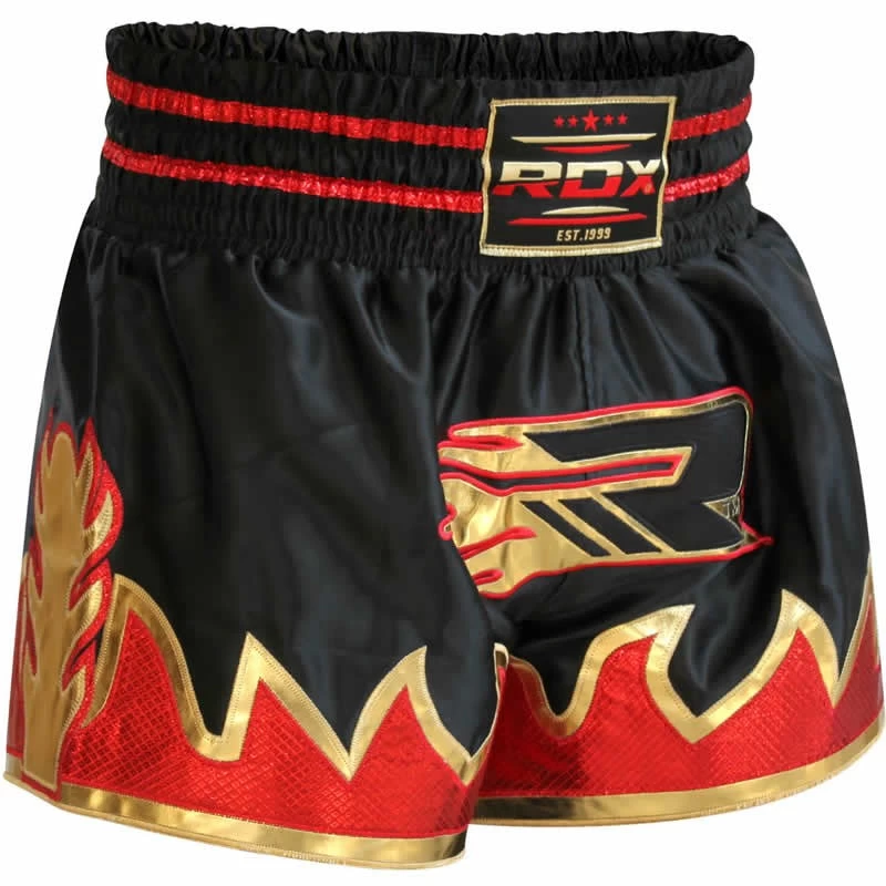 Set the ring on fire in these Crimson Flame Muay Thai Shorts; fiercely stylish boxing shorts made from a luxury satin and with advanced comfort and fit to keep you focused during fights. With enhanced mobility, you’ll have nothing holding you back; the moisture wicking satin will keep you dry and cool under pressure; the comfortable waistband will ensure a snug fit; plus the durable cloth with reinforced stitching is cut to last and last. These shorts won’t let you down. Featuring an awesome flame design and embossed tagline to help you stand out against your competition.