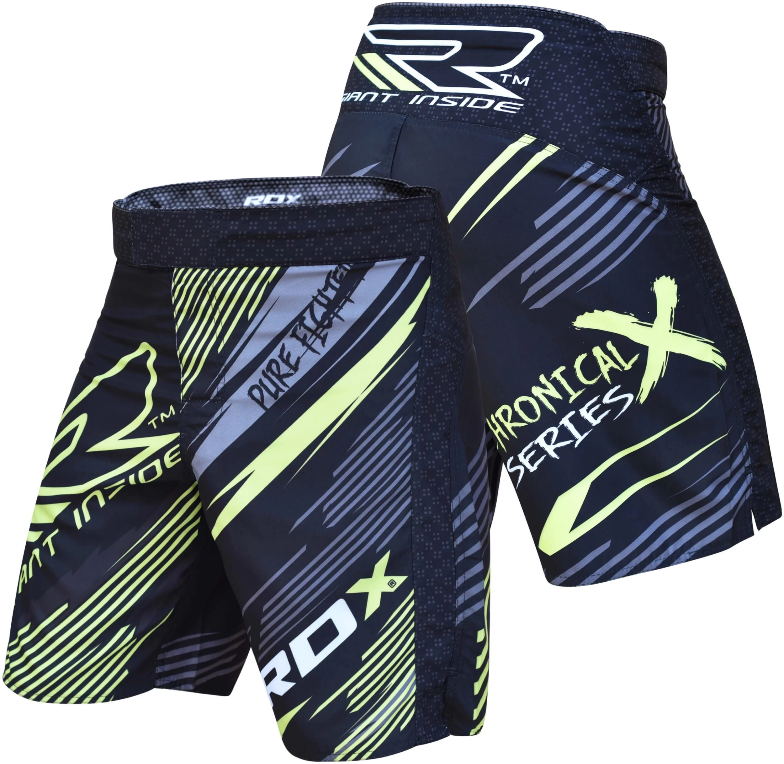 MMA shorts by RDX are designed for unrestricted freedom of movement and functional comfort. On each side of the shorts, athletic cuts are made to provide unparalleled mobility during training. Along with special stretchiness for stretch out, high kicks, and other movements related to the sport, the RDX shorts are made with supreme durability, functionality and complete breathability to maximize performance. The T3 reinforced stitching allows added ultimate strength and complements the durability of this fight shorts. RDX special inner strip waistband with interlocking drawstring is used within the design for adjustable and best fit.
