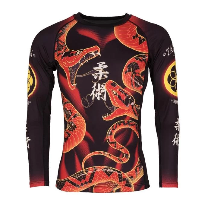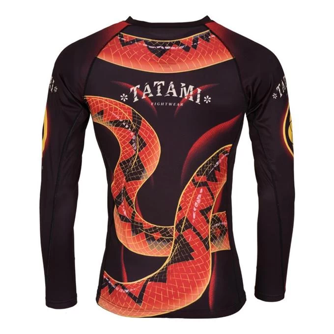The new Tatami Fightwear Spring Summer 2018 collection has pushed the boundaries yet again on functional, fashionable NO GI apparel. The Duelling Snake rash guards are designed with two vicious snakes coming head to head, with an oriental colour scheme promoting the red-hot nature of the animals. The highly detailed designs emphasise the features of one of the most unique animals on the planet. This rashguard is made with a comfortable and flexible polyester-spandex fabric blend and high quality sublimated material to ensure they won’t crack, peel or fade. Compression fit panels to maximise comfort and movement on the mat.