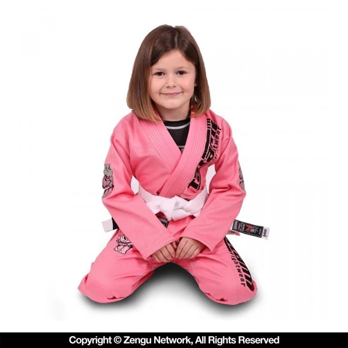 Tatami’s updated line of children’s Gis are themed around original characters created by the talented Meerkatsu. The pink Harriet the Hippo edition features black/pink accents and accommodates a wide range of kids sizes. The playful woven patches and Harriet the Hippo embroideries are great for kids and follow a fun color scheme, complemented by the colorful exterior jacket taping.