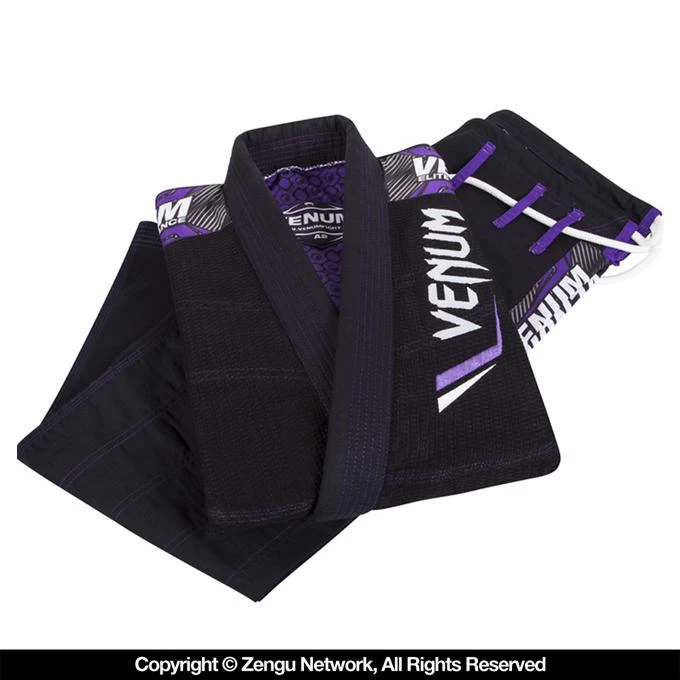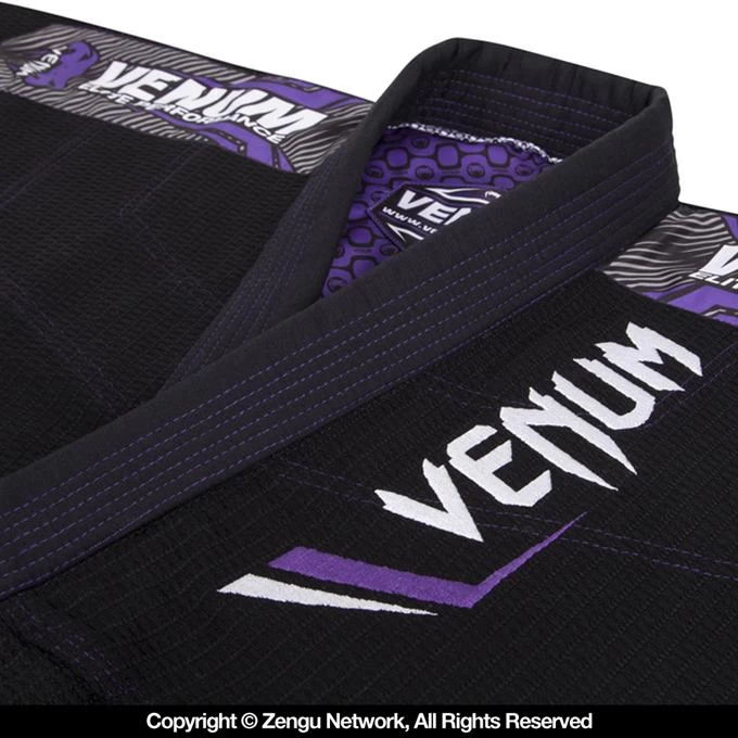 The “Elite” Gi from Venum is arguably their best-looking Jiu Jitsu Gi yet. The graphics and color combos look great in the form of high-quality embroideries and woven patches against the premium black fabrics. Constructed with pre-shrunk materials including 500 GSM Gold weave and lightweight ripstop. There’s no shortage of reinforcement stitching or paneling, making the Elite a Gi that’s equipped for daily rolling or the most rigorous of competition runs. Other specs include a sublimated inner yoke panel, multiple drawstring loops, and a round draw cord.