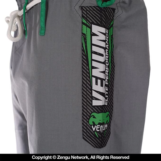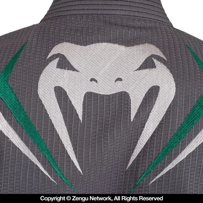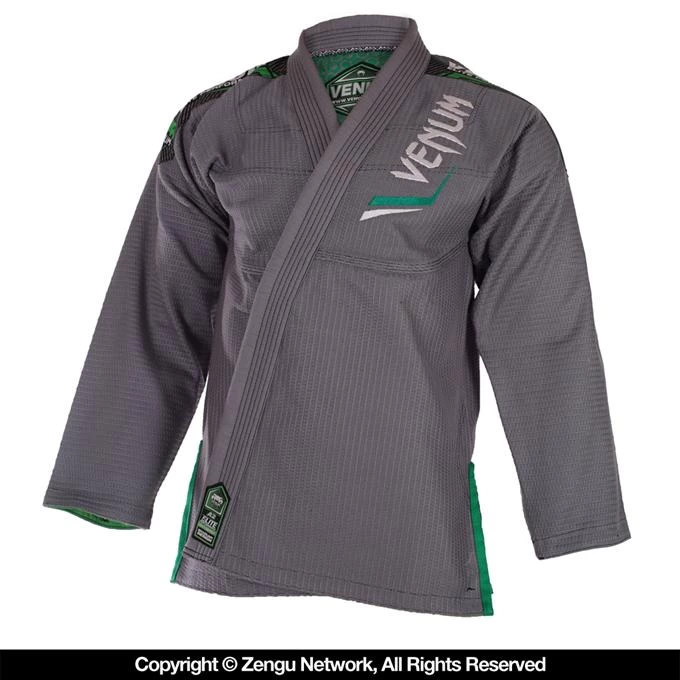 The “Elite” Gi from Venum is arguably their best-looking Jiu Jitsu Gi yet. The graphics and color combos look great in the form of high-quality embroideries and woven patches against the premium grey fabrics. Constructed with pre-shrunk materials including 500 GSM Gold weave and lightweight ripstop. There’s no shortage of reinforcement stitching or paneling, making the Elite a Gi that’s equipped for daily rolling or the most rigorous of competition runs. Other specs include a sublimated inner yoke panel, multiple drawstring loops, and a round draw cord.
